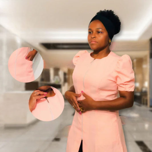 Jaleco Feminino Ziper e Manga Curta Bufante